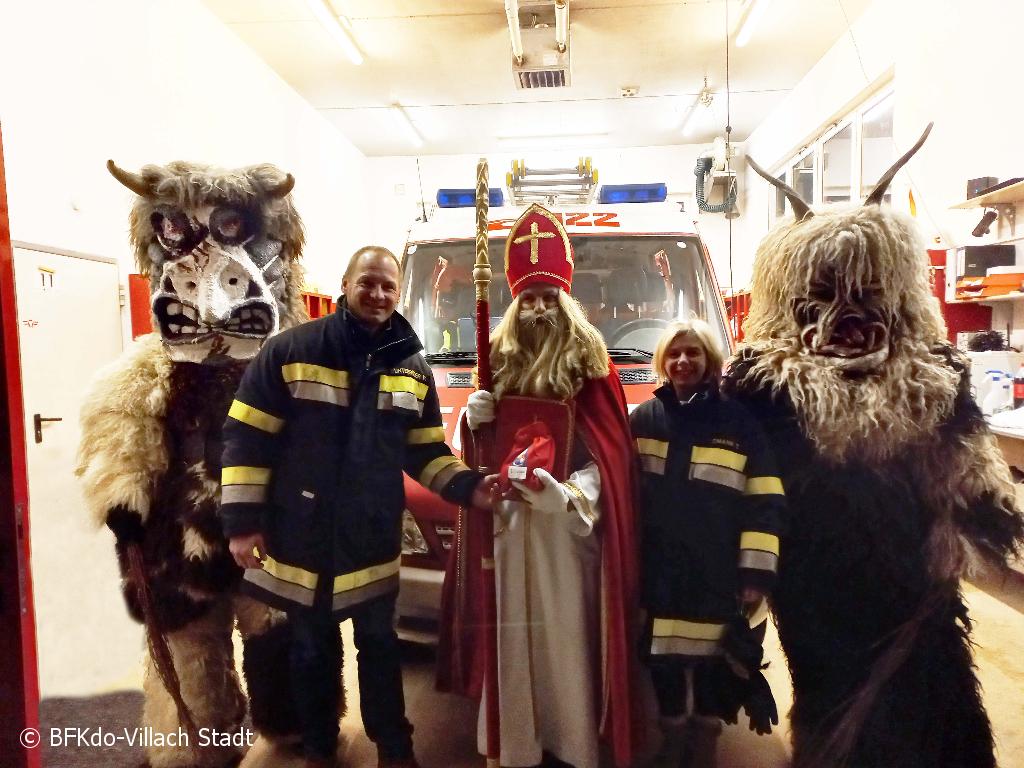 Damit auch sichergestellt ist, dass nur „brave“ Kinder ein Sackerl bekommen, hat der Nikolaus höchstpersönlich zusammen mit zwei Krampussen die Übergabe überwacht, wovon sich auch Bezirksfeuerwehrkommandant OBR Patrick Unterrieder überzeugen konnte.