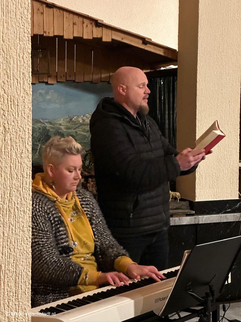 In den Ausführungen wurde auf den Advent als eigentlich ruhige und besinnliche Zeit eingegangen und eine rührende Geschichte vom Licht der Hoffnung vorgebracht. Die Segnung wurde sehr würdevoll vom Duo „soundArt“ mit Katrin Platzer-Wutti & Johannes Wutti begleitet.