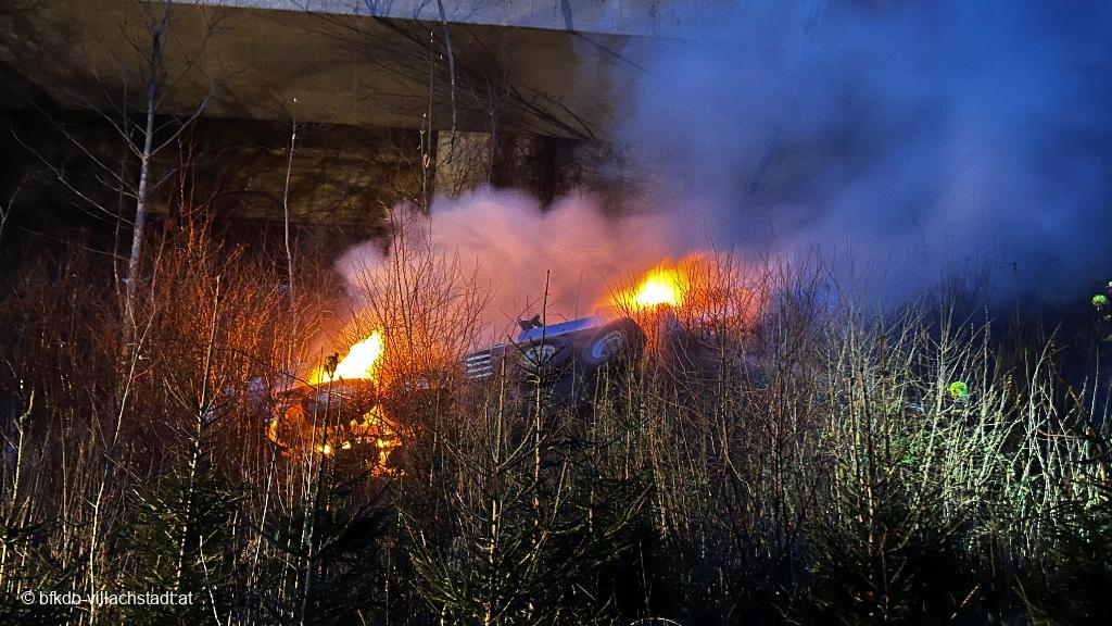 Anrufer haben diesen Feuerschein gesehen und zunächst für einen Waldbrand oder verfrühtes Osterfeuer im Bereich der B 100 gehalten. Daraufhin wurden die Freiwilligen Feuerwehren Töplitsch (VL) und Hauptfeuerwache Villach alarmiert. Am Einsatzort eingetroffen und nach der Erkundung stellte sich für die Einsatzkräfte erst das ganze Ausmaß dieses Einsatzes dar. Sofort wurden erste Maßnahmen eingeleitet und zusätzliche Kräfte der Feuerwehren Hauptfeuerwache Villach, Vassach, Wollanig und Fellach nachalarmiert.