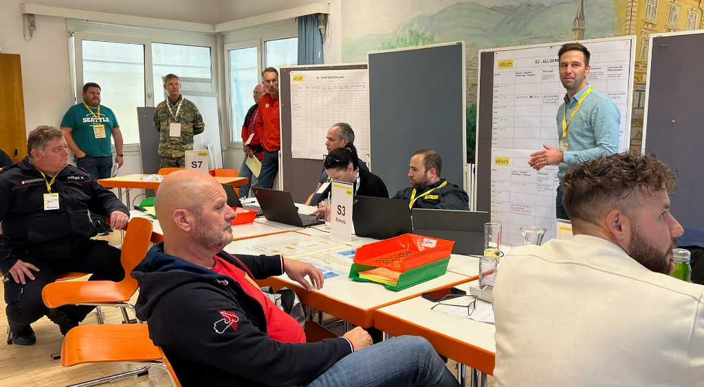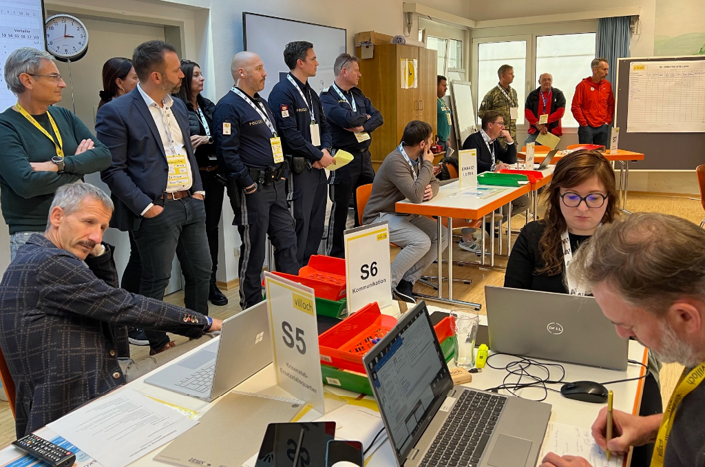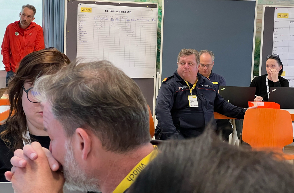Der Katastrophenstab des Magistrats Villach bereitet sich in regelmäßigen Abständen auf mögliche Großschadenslagen vor. Ziel dieser Übungen ist es, die Abläufe zu optimieren, aus den gemachten Erfahrungen zu lernen und die interdisziplinäre Zusammenarbeit stetig zu verbessern.
