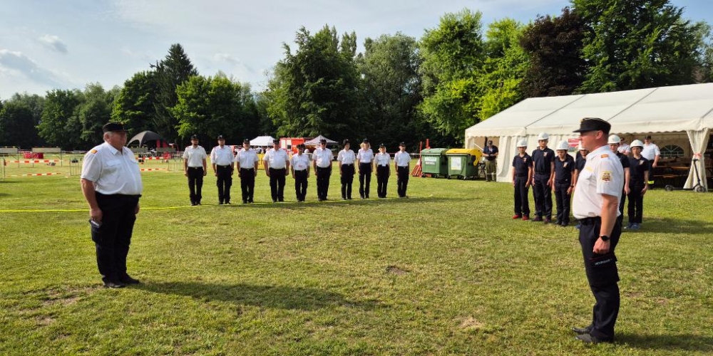 Bereits um 8:30 Uhr eröffneten die Bezirksfeuerwehrkommandos unter der Leitung von Bezirksfeuerwehrkommandant Patrick Unterrieder offiziell die Veranstaltung. Feuerwehrkurat Johannes Biedermann betonte in seinen Eröffnungsworten die Bedeutung des Teamgeists – nicht nur für die antretenden Mannschaften, sondern insbesondere für die Feuerwehrjugendgruppen.