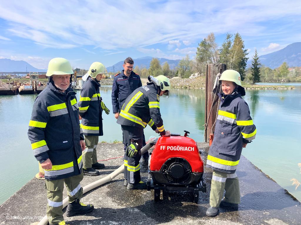 Der praktische Ausbildungsteil fand im Baggerhafen in Duel statt und bot den Teilnehmerinnen und Teilnehmern die Möglichkeit, das Erlernte unter realitätsnahen Bedingungen anzuwenden. Neben der Bedienung der Tragkraftspritzen wurden auch weitere wichtige Geräte wie Notstromaggregate, Tauchpumpen und Schmutzwasserpumpen intensiv beübt. Ein besonderer Schwerpunkt lag auf der sicheren Inbetriebnahme, der korrekten Handhabung der Tragkraftspritzen sowie auf der effizienten Wasserförderung über längere Wegstrecken.