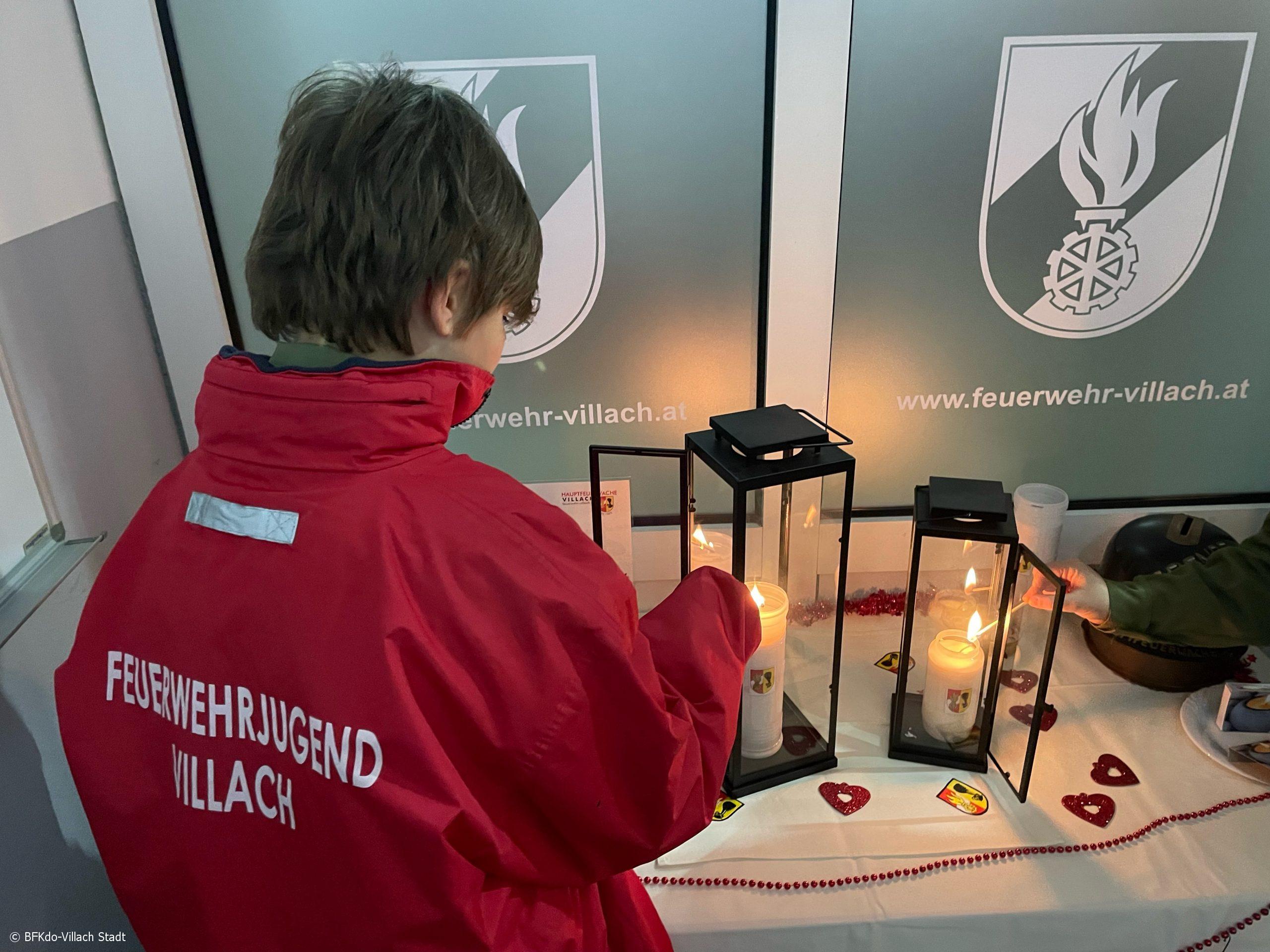 Auch heuer konnten, bedingt durch Corona, nur der Bezirksfeuerwehrkommandant OBR Patrick Unterrieder, der Bezirksjugendbeauftragte BI Christian Sumper und das Jugendfeuerwehrmitglied Paul Sumper der Einladung folgen, die unter dem Motto „Friedensnetz, ein Licht das alle verbindet!“ stand.