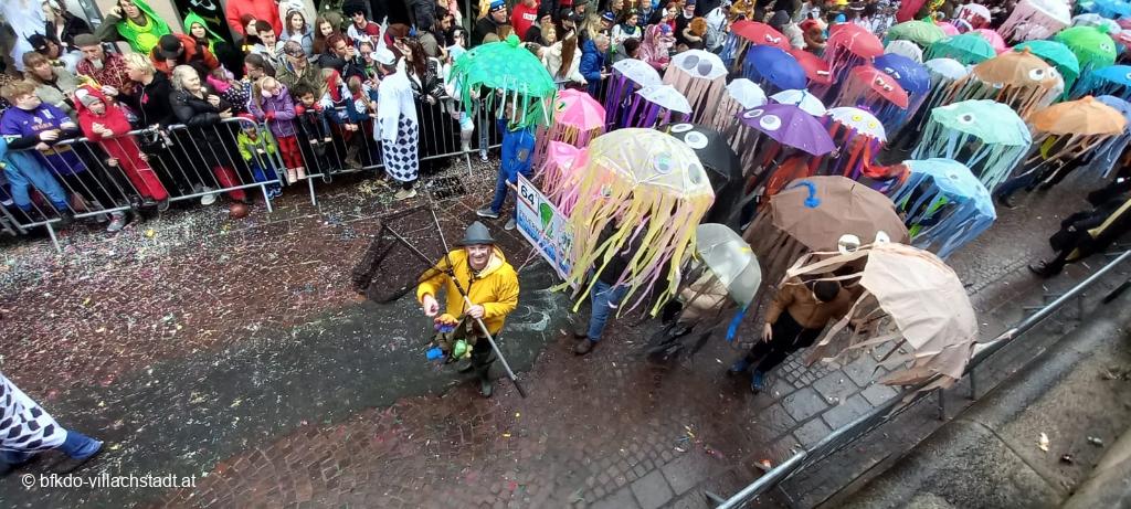 Ab zirka 12:30 Uhr erfolgte die Aufstellung unserer „Quallen und Fischer“ für den Umzug, wo die Kinder gezeigt haben, wie gut die Partnerschaft zwischen der Feuerwehrjugend Villach und Tolmin funktioniert.