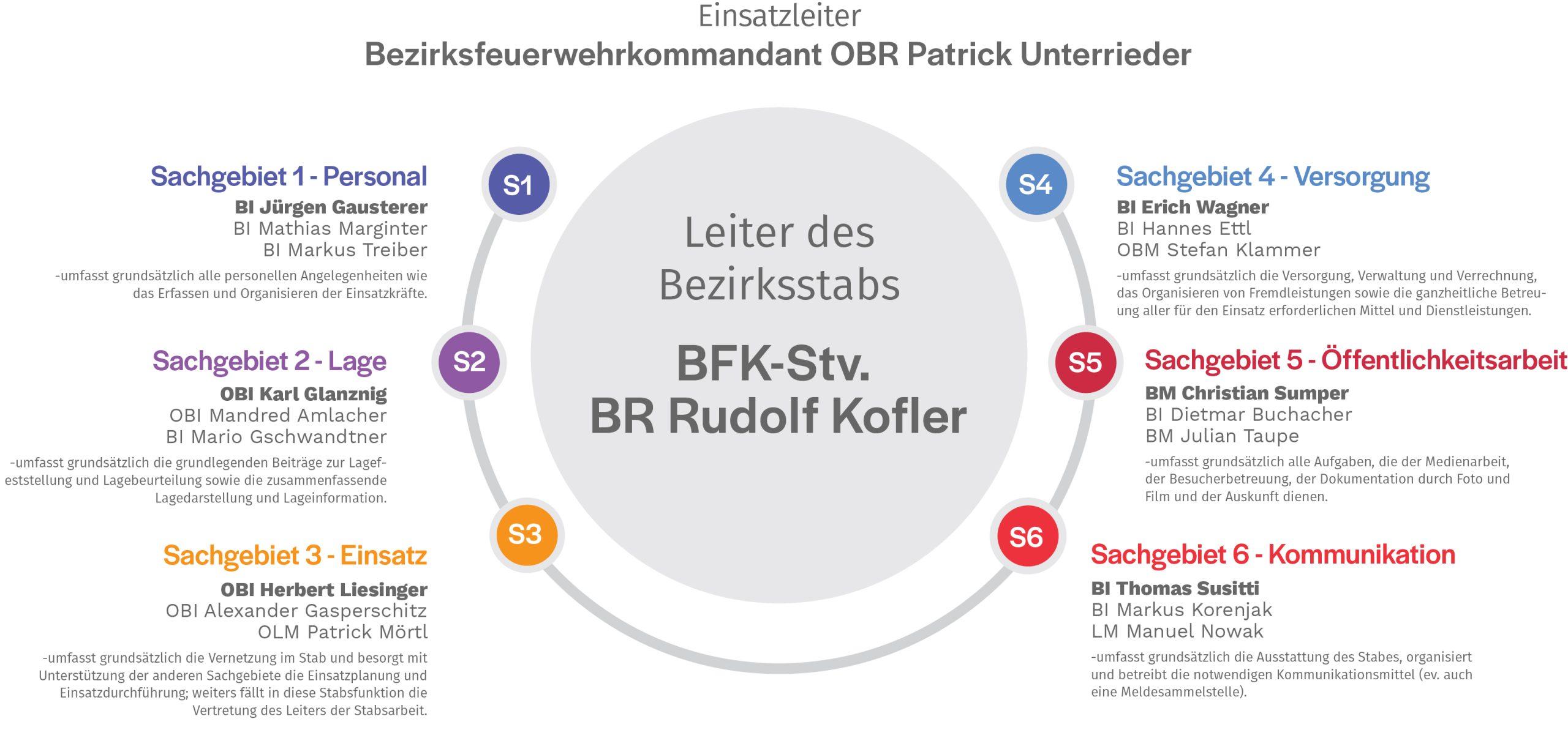 Bei Katastrophen und Großschadensereignissen aktiviert der Bezirksfeuerwehrkommandant als Einsatzleiter Feuerwehr den Bezirksfeuerwehreinsatzstab. Die Aufgabe besteht darin, den Einsatzleiter in allen Führungsgebieten zu informieren, zu beraten und zu unterstützen.